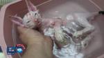 At first she said she thought it was plausible that the glue ended up on the cats by accident, because the male kitten had glue only in patches. But once she saw his sister, she felt it had to be intentional because the all- white kitten was totally submerged in the bucket of adhesive.
