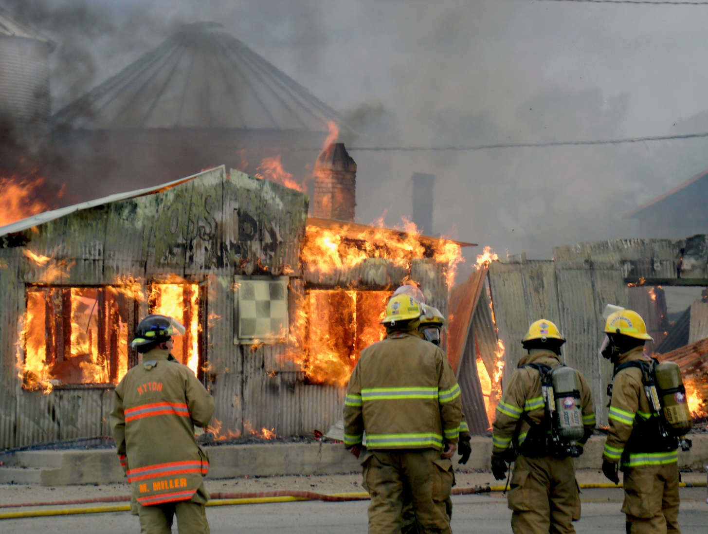 Firefighters were able to save a warehouse where Troy Ross stored some of his seed and fertilizer. On Monday, he was back at work, loading a massive container of liquid fertilizer from the warehouse into the back of a customer's pickup truck and chatting with others who stopped by to look at the damage.