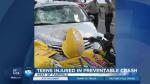 The driver of the ATV was propelled over the top of the car and the passenger fell onto the road's shoulder. The girls were not wearing helmets.