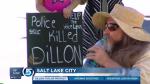 Scott Simons organized Monday's protest, bringing signs that he's had since his daughter was killed in an officer-involved shooting Jan. 9, 2013. The shooting of Kelly Simons was determined to be justified by the Salt Lake County District Attorney's Office, which determined that she was fleeing from officers to avoid arrest and had been accused of using force against an officer just days before.