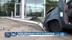 The impact destroyed the front of the van and toppled the flagpole, which missed hitting the library's glass front by less than 10 feet.