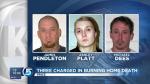 PRICE — Three people have been charged with murder in the death of a man whose body was found in the basement of a burning home in Price last month.