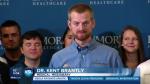 ATLANTA (AP) — Calling it a "miraculous day," an American doctor infected with Ebola left his isolation unit and warmly hugged his doctors and nurses on Thursday, showing the world that he poses no public health threat one month after getting sick with the virus.