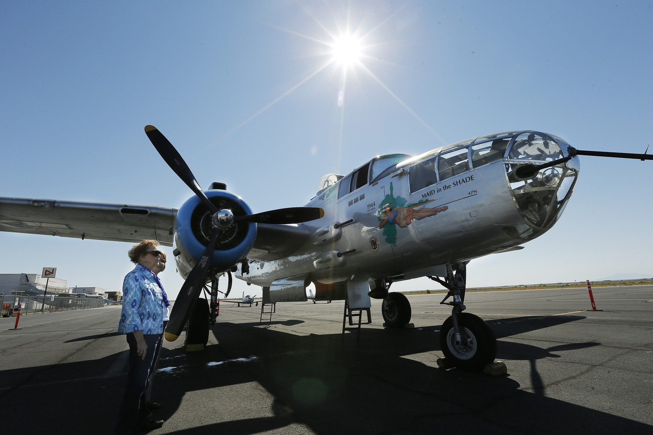 “To be paid to fly these beautiful military airplanes was a joy,” Bright recalled Tuesday as she walked on the tarmac and inspected the plane she once flew in training: the B-25.