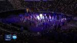One of the most touching moments of performance happened just minutes before it began when thousands of excited, noisy teenagers suddenly fell silent, rose to their feet and spontaneously started to sing.