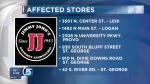 - St. George (Three stores): 930 S. Bluff St. from July 1, 2014 to Aug. 7, 2014; 910 N. Dixie Downs Rd. from July 1, 2014 to Aug. 1, 2014; and 42 S. River Rd. from July 23, 2014 to July 31, 2014