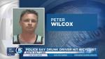 The driver, Peter Vance Wilcox, 36, of Syracuse, was given field sobriety tests and failed, Keller said. The officer who booked Wilcox into jail noted in a report that he was "obviously intoxicated."