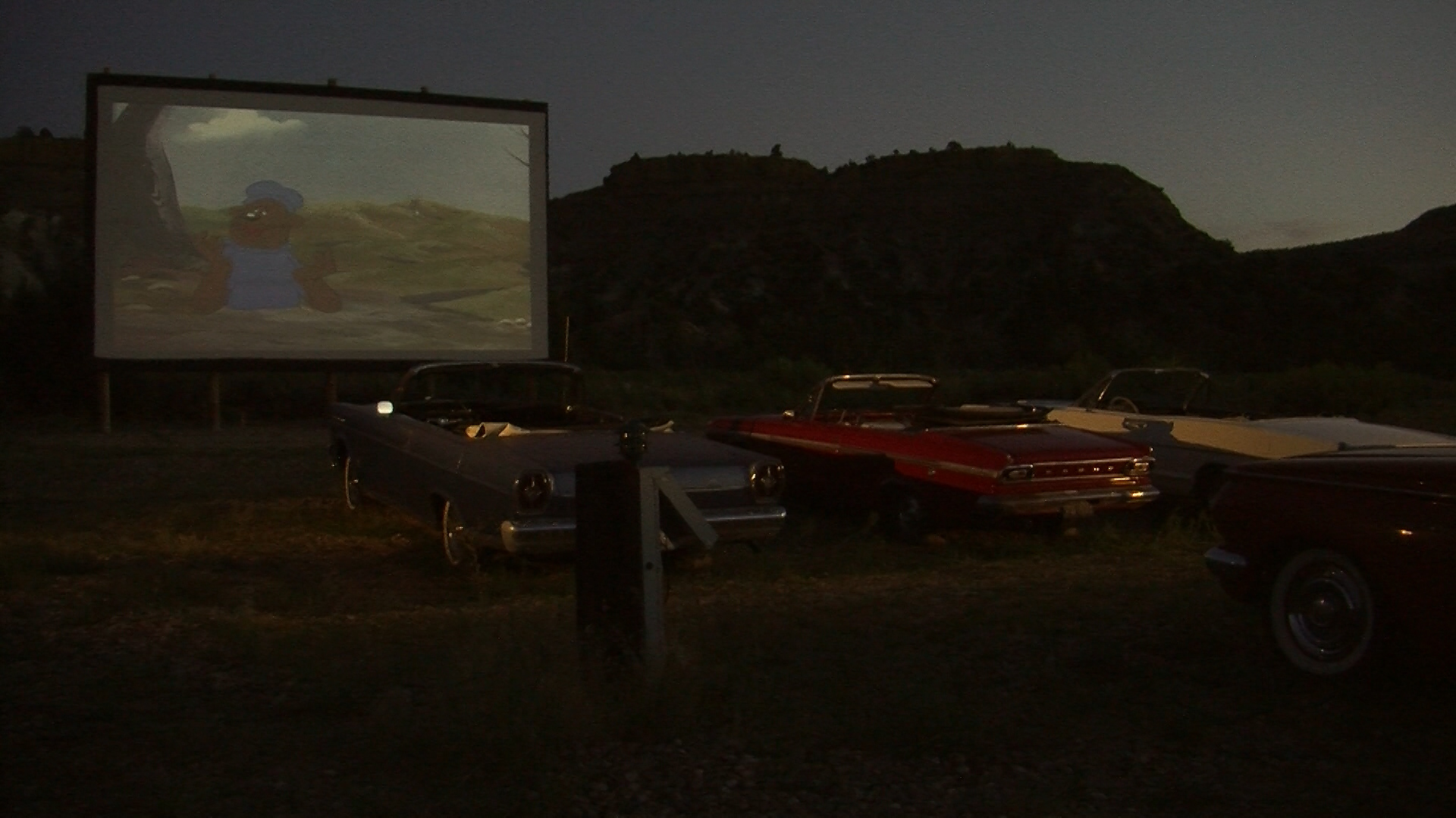 The vintage convertibles become comfortable theater seats as cartoons and feature films unspool on an outdoor movie screen.
