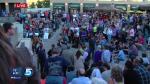 The celebration continued Monday night as hundreds gathered at Library Square for a rally, giving a loud and long standing ovation to the plaintiffs and lawyers in the case challenging Utah's nearly 10-year-old ban on same-sex marriage. Couples came carrying signs declaring "I love my husband" and "I love my wife," dancing and singing as they waited for the event.