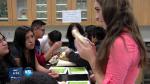 The first science lesson is in animal adaptation. The young teachers capture their students' interest with hands-on exhibits from the Natural History Museum. Eighth-grader Alberto Solano asks a group of fourth-graders, "Do you guys notice any similarities between all of these specimens?"
