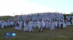 After gathering to be counted for the record, the volunteer angels stood as a backdrop while the nativity was played out and filled in a grid painted on the grass to depict a nativity when photographed from above.