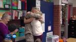 The naval officer first surprised his mother then visited his first grade daughter and her teacher — who also happens to be his wife — at Cherry Creek Elementary School.