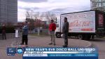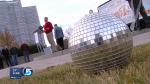 The giant disco ball, created by a team led by local artist Derek Dyer, will weigh 2,300 pounds — including 1,500 pounds of aluminum. It will be covered with 1,200 mirrors and stand two stories high and two stories wide. Many of the materials for the ball — that carries a $50,000 price tag — were donated by local companies.