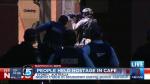 Television footage shot through the cafe's windows showed several people with their arms in the air and hands pressed against the glass, and two people holding up what appeared to be a black flag with white Arabic writing on it.