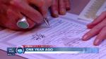 Many couples at the event hosted by Equality Utah, Utah Pride Center and ACLU of Utah, were also celebrating their one-year wedding anniversaries after they rushed to the clerk's office for their marriage licenses and to take their vows on that Friday following the surprise pre-Christmas court decision by U.S. District Judge Robert J. Shelby.