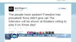 "The people have spoken! Freedom has prevailed! Sony didn't give up!" said Rogen on Twitter.