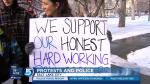 One woman bore a sign that said, "Police don't shoot to kill. They shoot to stay alive."