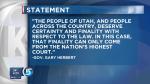 "As this case progresses, I once again encourage all Utahns — regardless of their personal views on this matter — to treat each other with respect," he said in a statement.