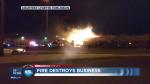 Crews remained on scene late Tuesday monitoring hot spots, including a fuel tank that was still burning.