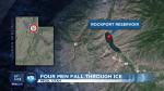 PEOA, Summit County — Four men were able to swim back to shore Saturday afternoon after falling through thin ice at Rockport Reservoir while ice fishing.