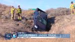 Troopers say the driver was thrown from the truck, and was pinned under it when firefighters arrived.