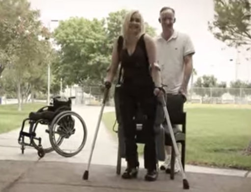 The system, called "ReWalk,” works off a tilt meter that is triggered by movement. Users must have strength in the arms and in their core muscles.