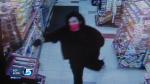 Surveillance footage released by police shows two men dressed in black hooded sweatshirts and red bandanas over their faces run into the store at 5:37 a.m. Wednesday, both armed with handguns. Marsh can be seen at the cash register, scrambling as he opens it.