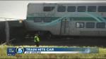 The cause of the crash was under investigation. But Metro supervisor Diljiat Sandhu said it appeared that the car's driver was attempting to turn left at a grade crossing and didn't see the approaching train. What was left of the vehicle was still partly wedged onto the tracks Saturday afternoon.