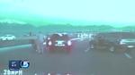 As Ellison zips between two police vehicles attempting to block a residential street, one officer is heard warning that Ellison is coming "at a high rate of speed, he almost clipped me."