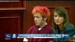 CENTENNIAL, Colo. (AP) — Two versions of the unstable mind of James Holmes were presented to a jury Monday as lawyers revealed many more details about his conversion from a promising grad student to a gunman capable of opening fire on hundreds of unsuspecting moviegoers at a "Batman" premiere.