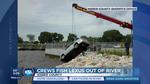 Because of the heavy rain from the weekend, crews had to open flood gates to lower the river 4 to 5 feet before getting the vehicle out. Findlay said. It took crews about an hour using a crane to lift the vehicle out of the water.
