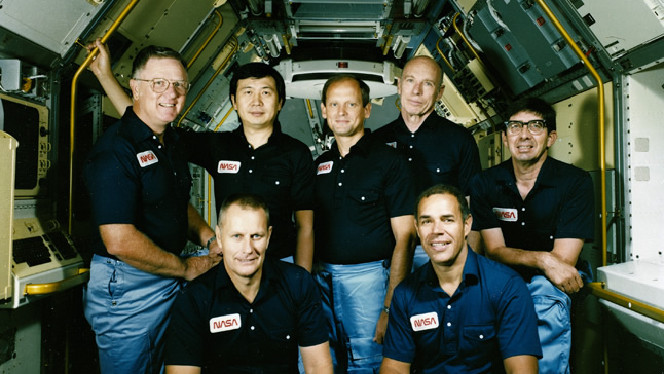 Garn pictured in the back row, first person on the right. Photo credit: NASA