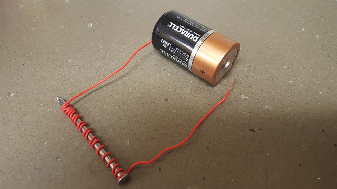 Ask: What happens when you add coils around the nail? What happens when you increase the current flowing through the wire?