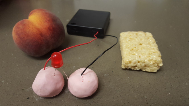 Ask: What happens if you add an extra piece of food to your circuit? Does some types of food illuminate the LED more than others?