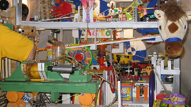 Rube Goldberg machines are named after a famous cartoonist who is best known for his series of cartoons which would create elaborate chain reactions. You can create your own Rube Goldberg machine out of common household items.