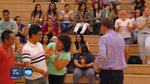 Many of the players greeted the student with high-fives and hugs during the assembly and afterward.