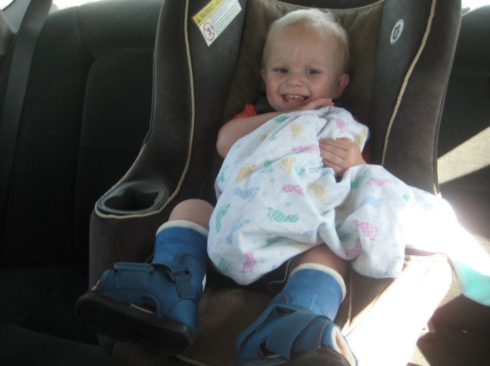 Caden was born with bilateral clubfeet, meaning both his feet had grown deformed and tangled up, inside his mother’s womb.