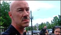 Former Salt Lake Police Chief Chris Burbank gets a hug from a woman after talking with KSL Newsradio's Doug Wright about his departure from the city Friday, June 12, 2015, in Riverton. (Photo: Derek Petersen, KSL-TV)