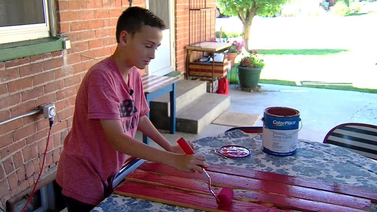 He asked his mom to help him put the pallet flags on a Brigham City classifieds webpage.