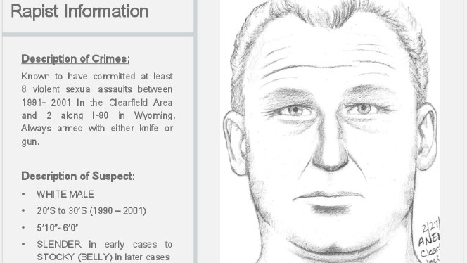 Police say the unknown rapist’s series of documented attacks began in the summer of 1991 in Rock Springs, Wyoming. The attacks continued on roughly a yearly basis until 1997, when two rapes attributed to the man occurred in July and September. There were two more attacks in 2000 and another in 2001 — all in Clearfield. In all, about half of the assaults were perpetrated in Clearfield, police said.