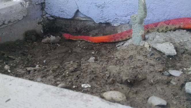 And because the pink paint makes him stand out, Dix said the snake could easily be spotted and eaten by birds of prey or other predators.