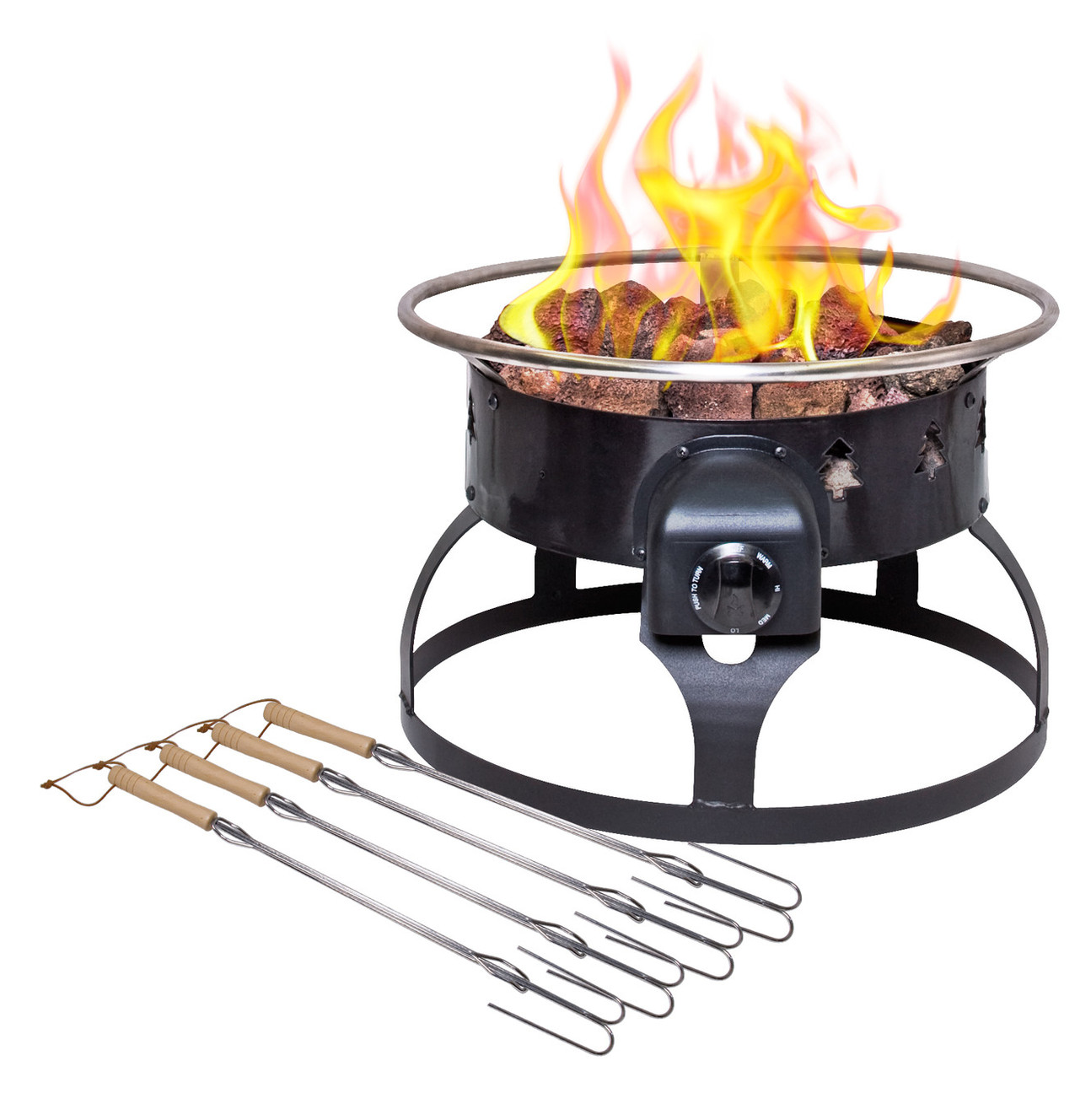 Because it’s portable, the Redwood is also good for roasting marshmallows in the backyard. In fact, it comes with four roasting sticks. The adjustable flame ensures that you can keep it just right for whatever the conditions. Features include matchless ignition, safety shutoff valve, a 5-inch hose and a support stand for your propane tank.