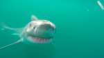 The shark gets up-close and personal with the camera, both under and above the water. At one point, the viewer can see inside the shark's mouth to glance at his razor-sharp teeth. The shark can be heard bumping against the camera. Like a scene out of "Jaws," the shark tries to bite at the boat's motor.