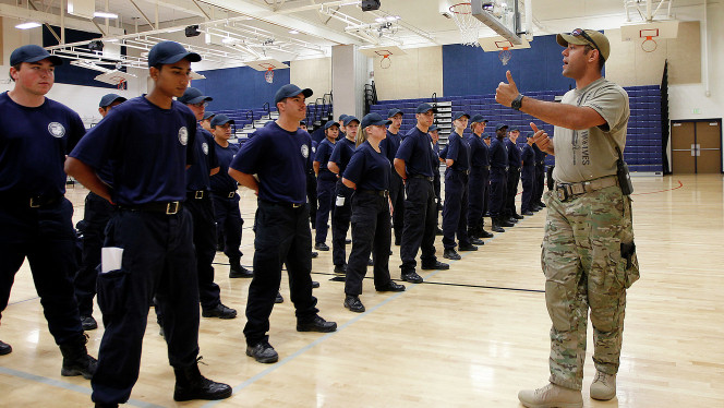 The classrooms of Eastmont have temporarily been transformed into barracks that house multiple sleeping bags and the neatly placed belongings of students participating in the academy — a weeklong military-type boot camp for youths ages 14 to 20 who are considering careers in law enforcement or military services.