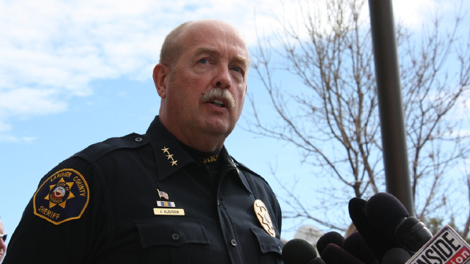 Larimer County Sheriff Jim Alderden speaks to reporters on Sunday, October 18. (Jim Spellman via CNN)