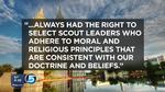 "As a chartering organization, The Church of Jesus Christ of Latter-day Saints has always had the right to select Scout leaders who adhere to moral and religious principles that are consistent with our doctrines and beliefs," according to a statement Monday.
