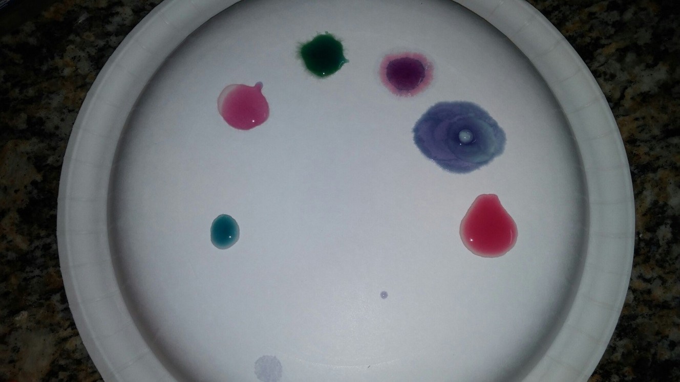 Under parental supervision, slice up the red cabbage and put it in a small pot or bowl. Simmer on the stove or in the microwave until boiling. Reduce the heat and let it steep and cool until you have some deep purple juice. Get a white plate or paper towel, and carefully drop each of the liquids in a circle on it. Don't let them touch and also wash and dry the spoon between any of the liquids you put it in. Once you have the liquids on the plate, drip a little of the red caggage juice on each one. What happens?