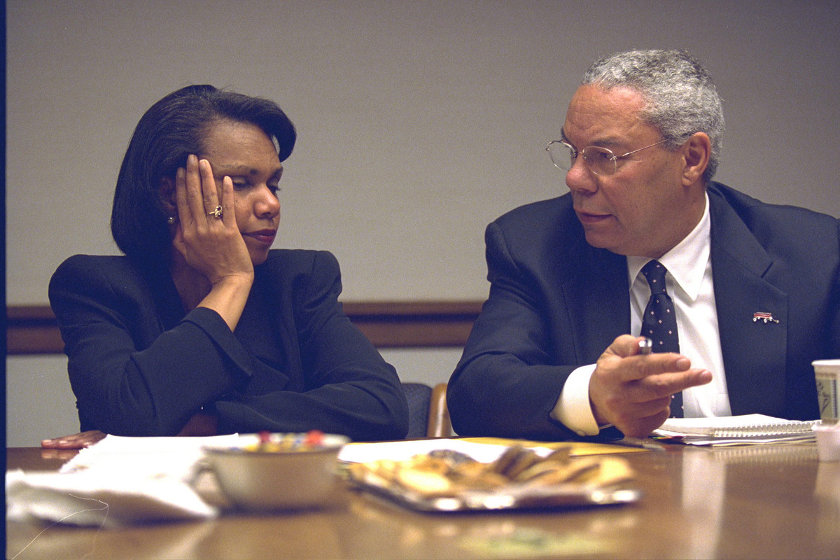 Then-President George W. Bush, then-first lady Laura Bush, then-Secretary of State Colin Powell and then-National Security Adviser Condoleezza Rice can also be seen in the photos.