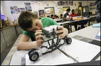 The robotics engineering group designed and built robots that looked like beetles, thereby adding an art component to the technical portion of the lesson, he noted.