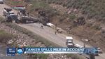 Before crews arrived on scene to address the fire, quick-acting witnesses stuck in traffic used some of the spilled milk as well as extinguishers from stopped vehicles to put out the fire. When emergency crews arrived on scene, they ensured the fire was out completely.